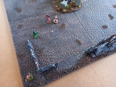 Como viene siendo habitual en esta campaña, estoy usando no muertos como antagonistas y por tanto lo que uso son esqueletos, aunque a efectos de reglas mantengan los atributos de los gnolls que aparecen en el reglamento original. También hay una cosa llamada "shadow knight" que en principio parece algo del estilo de un tumulario, y que voy a usar como un vampiro, grandes antagonistas del Refugio del Cuervo para quien conozca la misión del Oblivion. Además, y para mantener la continuidad con la misión anterior, incorporo una bruja (chamán gnoll) que quedó malherida en la misión anterior, pero logró sobrevivir. Narrativamente consideré que huía y que mis hombres, tras recuperarse de sus heridas como malamente pudieron, iban tras ella. Muchos de mis hombres también arrastraban heridas de la partida anterior, de hecho.